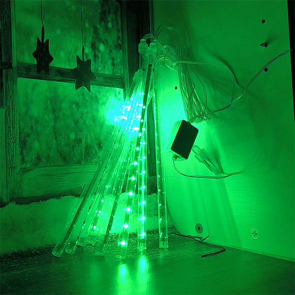 Главная » Гирлянды Светодиодные » Гирлянды Ледяные сосульки » Гирлянда "Световые сосульки" Зеленые 2.4 м, 8 штук.
