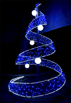 Главная » Светодиодные Ёлки » Новогодняя декорация ель "Спираль с шарами" 3м Синяя